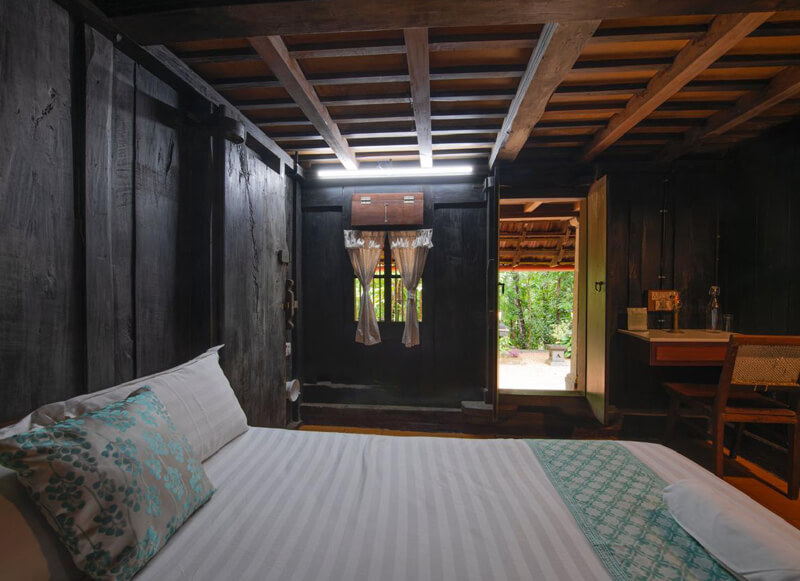 The villa is a traditional Kerala Arayum Nirayum that can accommodate 2 families of 4. There are 2 air-conditioned bedrooms, with king-size beds. Extra beds can be provided upon request. There is a kitchen, a long verandah and a big bathroom with a rain bathing option. A caretaker will be available on the premises 24x7.